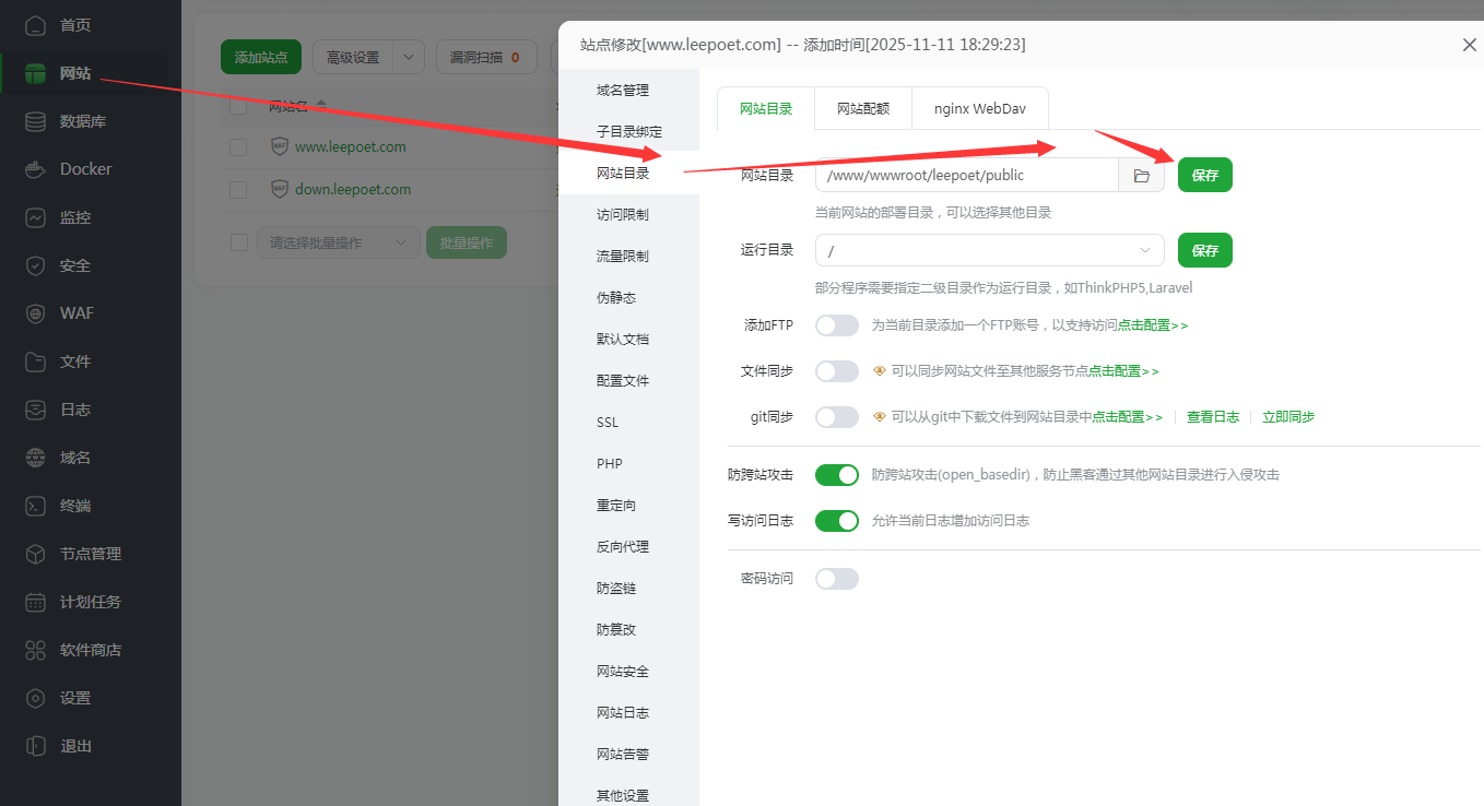 - 操作前提: 操作前请务必备份两个站点的文件和数据库。